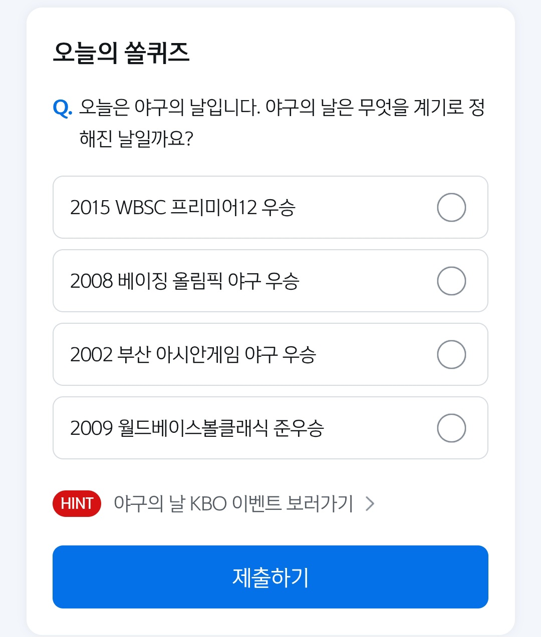 쏠퀴즈,8월,23일,야구의날,2015WBSC프리미어12,우승,2008베이징올림픽야구,2002부산아시안게임야구,2009월드베이스볼클래식,준우승