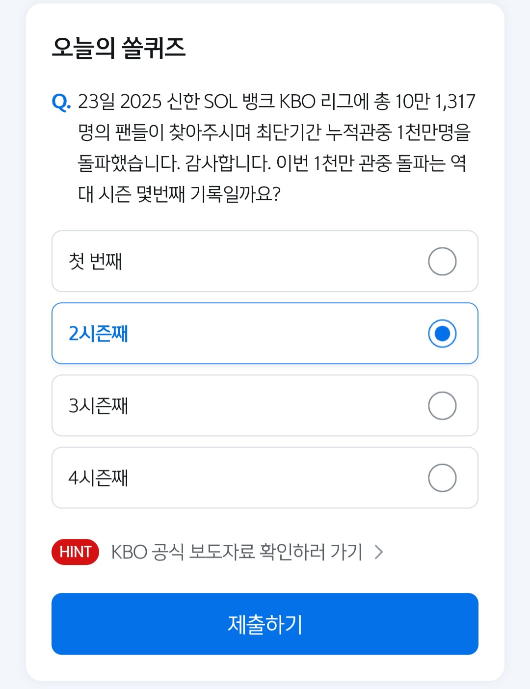 | 쏠퀴즈 8월 23일 오늘은 야구의 날입니다. 야구의 날은 무엇을 계기로정 해진 날일까요? (0) | 2025.08.23 |