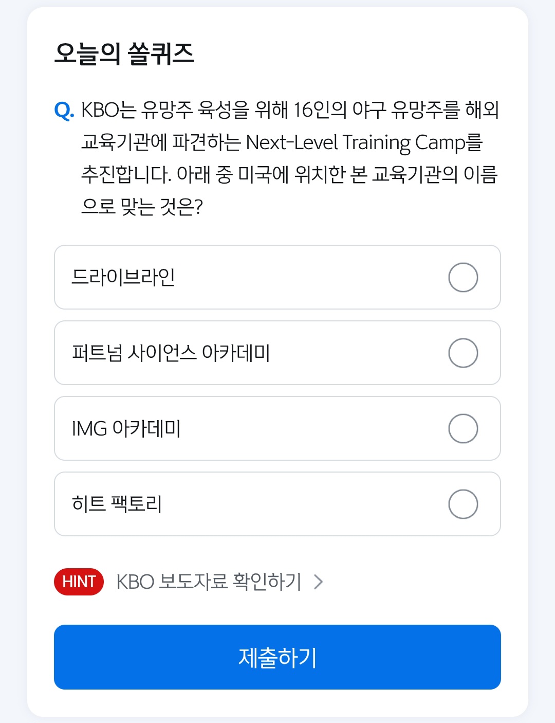 쏠퀴즈,12월,24일,KBO,유망주육성,야구유망주,Next-LevelTrainingCamp,드라이브라인,퍼트넘 사이언스아카데미,IMG아카데미,히트팩토리